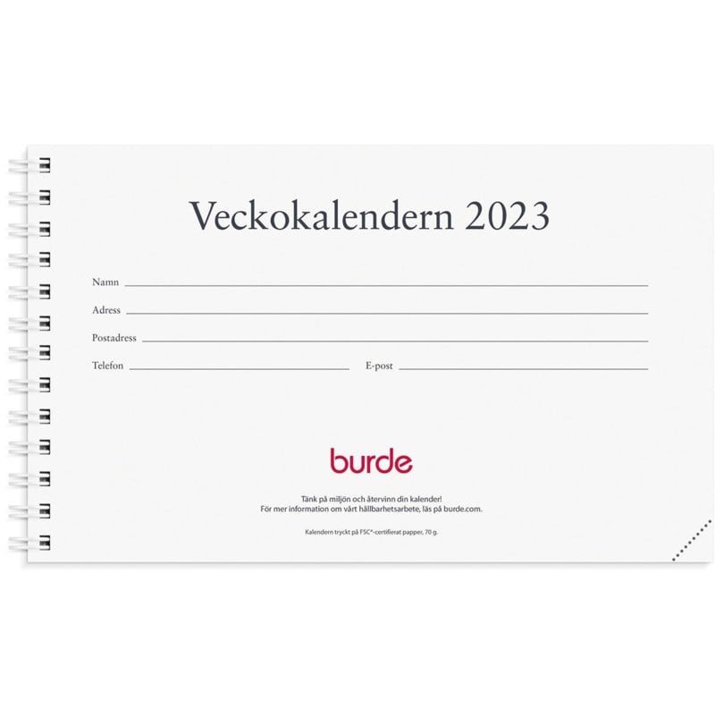 Almanacka Burde 1410 Veckokalendern Refill 2026. Kalender 2026 från Burde. Format: 148x90 mm. Layout: Stående. Vecka/uppslag. Timindelning 8-17. Kalendarium: 2025-12-15 - 2027-01-03. Omslag: Kartong. Spiralbunden. Innehåll: Årsöversikter, Årsplaner. Antal