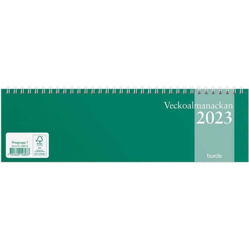 Almanacka Burde 1480 Veckoalmanackan 2026. Kalender 2026 från Burde. Format: 305x90 mm. Layout: Stående. Vecka/uppslag. Timindelning 8-18. Kalendarium: 2025-12-22 - 2027-01-03. Omslag: Kartong. Spiralbunden. Innehåll: Årsöversikter. Antal sidor: 56. Miljö