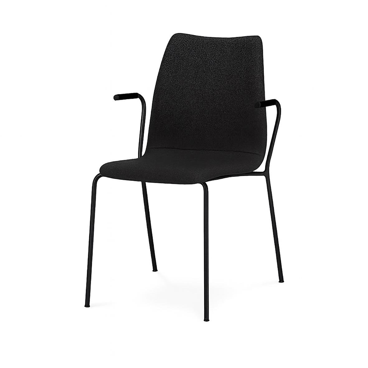 Karmstol inoff Knuff Helklädd Mörkgrå/Svart kombinerar stilren form med smart funktion. Det helklädda sittskalet i formpressat trä ger en behaglig sittupplevelse, medan de integrerade armstöden ger extra stöd och komfort. Armstödens konstruktion gör dessu