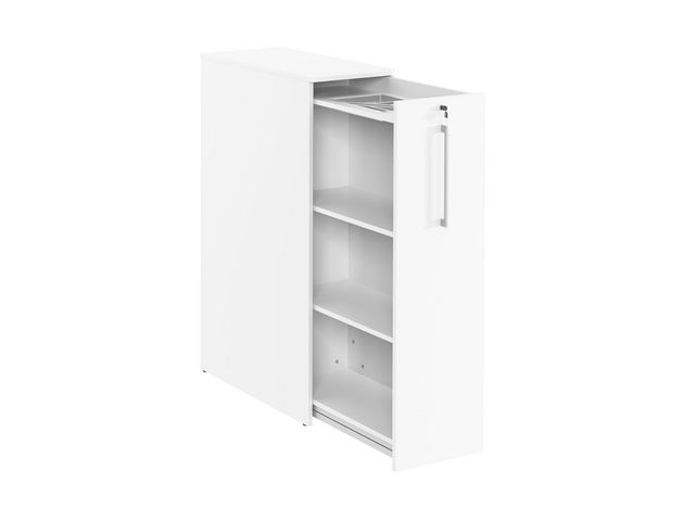 Sidoskåp/Tower är perfekta skåpet för att kunna skapa dold förvaring samt för att skilja av mellan arbetsplatser En praktisk möbel där utdragsdelen glider på kullagerförsedda gejdrar. Justeringsfötter finns för att kunna få en rak möbel även vid lite ojämna golv. Skåpen finns höger eller vänster och du väljer vilket när du sitter vid ditt skrivbord. Det är utrustat med praktiskt pennfack. Materialet är stryktåligt laminat vilket är lättskött och färgbeständigt år efter år. Skåpen är monterade och bara att avemballera och ställa på plats. Ryggen är 18 mm vilket gör den lämplig att ha ute i rummet och behöver inte ställas mot en vägg. – Mått: 400x800x1320 mm