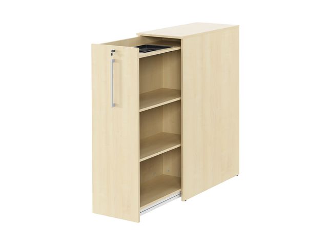 Sidoskåp/Tower är perfekta skåpet för att kunna skapa dold förvaring samt för att skilja av mellan arbetsplatser En praktisk möbel där utdragsdelen glider på kullagerförsedda gejdrar. Justeringsfötter finns för att kunna få en rak möbel även vid lite ojämna golv. Skåpen finns höger eller vänster och du väljer vilket när du sitter vid ditt skrivbord. Det är utrustat med praktiskt pennfack. Materialet är stryktåligt laminat vilket är lättskött och färgbeständigt år efter år. Skåpen är monterade och bara att avemballera och ställa på plats. Ryggen är 18 mm vilket gör den lämplig att ha ute i rummet och behöver inte ställas mot en vägg. – Mått: 400x800x1320 mm