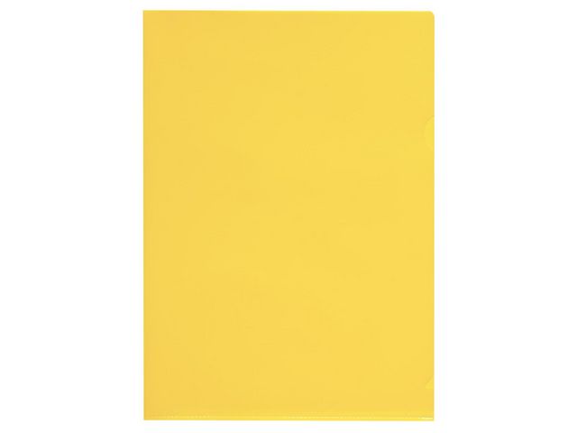 Praktiska kopieringssäkra aktmappar i A4-format med tumgrepp. Aktmapp i A4-format med tumgrepp tillverkade av präglad PP-plast. Dessa mappar är kopieringssäkra och de inte reflekterar ljus. Det betyder att man kan kopiera papper som ligger inuti mappen utan att ljuset från kopiatorn reflekteras i plasten vilket kan påverka kopians kvalitet. Mappen har en öppen övre kortsida samt höger långsida där även tumgreppet sitter. – Storlek: A4-format – Tjocklek: 0,15 mm – Färg: Gul – Material: Präglad Polypropenplast – Antal: 25 – Två öppna sidor – övre kant och höger långsida – Tumgrepp