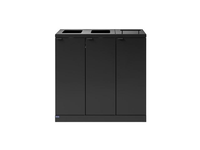 Elegant avfallsbehållare i stilren och praktisk design, öppna inkast och lyftbart lock. Flexibel avfallsbehållare från Bica säkerställer enkel och användarvänlig avfallssortering på arbetsplatsen. Utformat med 3 stationer: 2 öppna inkast och 1 med lyftbart lock. Syftet med locket är att minimera luktstörningar och förhindra bananflugor vid sortering av matavfall. Frontdörr med soft close för ergonomiskt korrekt tömning utan tunga lyft. Avfallsbehållaren är utrustad med en integrerad och stark påshållare så att påsen håller sig på plats. Locket döljer även påsen, så avfallsbehållaren håller en stilren design. Mobilt tack vare de monterade hjulen, som är gömda bakom sockeln. För att uppnå hög hygien och minimalt underhåll är avfallsbehållaren gjord av pulverlackerat stål. Alla modeller i Bica Series S30 kan anpassas och kombineras efter behov med hjälp av kraftfulla magneter. – Mått (H×B×D): 85 x 89,3 × 30cm – Mått inkast: 19 x 19cm – Färg: antracit – Material: stål – Kapacitet: 3 x 65 liter – Nettovikt: 42,94kg – Bica Modell 873 – Piktogram ingår ej – EU Ecolabel licensnummer: DK/049/064