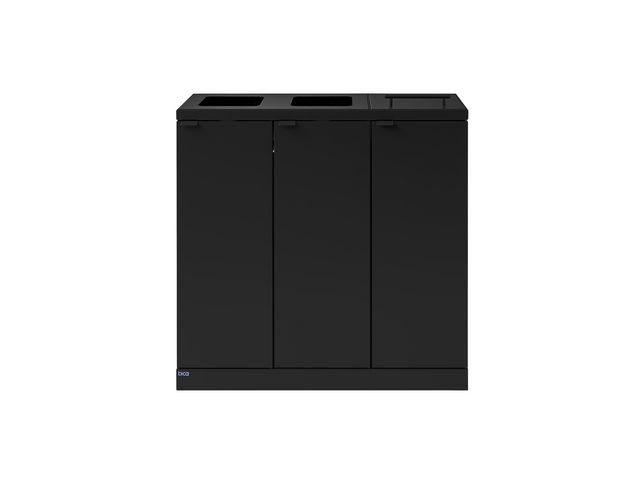 Elegant avfallsbehållare i stilren och praktisk design, öppna inkast och lyftbart lock. Flexibel avfallsbehållare från Bica säkerställer enkel och användarvänlig avfallssortering på arbetsplatsen. Utformat med 3 stationer: 2 öppna inkast och 1 med lyftbart lock. Syftet med locket är att minimera luktstörningar och förhindra bananflugor vid sortering av matavfall. Frontdörr med soft close för ergonomiskt korrekt tömning utan tunga lyft. Avfallsbehållaren är utrustad med en integrerad och stark påshållare så att påsen håller sig på plats. Locket döljer även påsen, så avfallsbehållaren håller en stilren design. Mobilt tack vare de monterade hjulen, som är gömda bakom sockeln. För att uppnå hög hygien och minimalt underhåll är avfallsbehållaren gjord av pulverlackerat stål. Alla modeller i Bica Series S30 kan anpassas och kombineras efter behov med hjälp av kraftfulla magneter. – Mått (H×B×D): 85 x 89,3 × 30cm – Mått inkast: 19 x 19cm – Färg: svart – Material: stål – Kapacitet: 3 x 65 liter – Nettovikt: 42,94kg – Bica Modell 873 – Piktogram ingår ej – EU Ecolabel licensnummer: DK/049/064