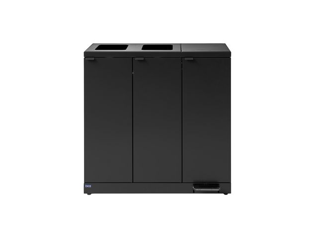 Elegant avfallsbehållare i stilren och praktisk design med fotpedal. Flexibel avfallsbehållare från Bica säkerställer enkel och användarvänlig avfallssortering på arbetsplatsen, handfri användning med pedal. Utformat med 2 öppna inkast och 1 med praktiskt lock, som öppnas med den praktiska fotpedalen, så att handfri användning säkerställs. Syftet med locket är att minimera luktstörningar och förhindra bananflugor vid sortering av matavfall. Frontdörr med soft close för ergonomiskt korrekt tömning utan tunga lyft. Avfallsbehållaren är utrustad med en integrerad och stark påshållare så att påsen håller sig på plats. Locket döljer även påsen, så avfallsbehållaren håller en stilren design. Justerbara fötter, som är dolda bakom sockeln. För att uppnå hög hygien och minimalt underhåll är avfallsbehållaren gjord av pulverlackerat stål. Alla modeller i Bica Series S30 kan anpassas och kombineras efter behov med hjälp av kraftfulla magneter. – Mått (H×B×D): 85 x 89,3× 30cm – Mått inkast: 19 x 19 cm – Färg: antracit – Material: stål – Kapacitet: 2 x 65 liter – Nettovikt: 46,87kg – Bica Modell 973 – Piktogram ingår ej – EU Ecolabel licensnummer: DK/049/064