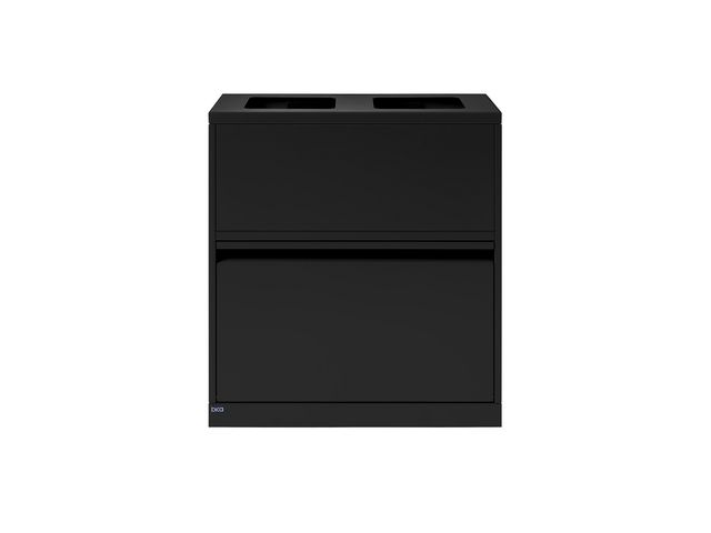 Komplett avfallsbehållare i stilren och praktisk design, öppna inkast och dolda hjul. Flexibel avfallsbehållare från Bica säkerställer enkel och användarvänlig avfallssortering på arbetsplatsen. Utformat med 2 öppna inkast och med en låda – skapad för användning av innerbehållare. 2 x 20 liter i toppen och 2 x 15 L och 1 x 10 L i botten ingår som standard. Nedre delen av avfallssystemet kan anpassas med innerbehållare efter behov, så att totalt 11 enheter kan sorteras. Avfallssystemet levereras med innerbehållare med handtag för enkel hantering vid tömning. Locket döljer de inre behållarna och påsarna, så avfallssystemet bibehåller en stilren design. Utrustat med en låda med soft close för ljudlös och lugn stängning. Mobilt tack vare de monterade hjulen, som är gömda bakom sockeln. För att uppnå hög hygien och minimalt underhåll är avfallsbehållaren gjord av pulverlackerat stål. Kombinera och anpassa efter behov med andra avfallsbehållare från Bica S30-serien. – Mått (H×B×D): 85 x 78 × 30cm – Mått inkast: 16 x 19cm i top – Färg: svart – Material: stål – Kapacitet: 80 liter – Nettovikt: 38,56kg – Bica Modell 880 – Piktogram ingår ej – EU Ecolabel licensnummer: DK/049/064