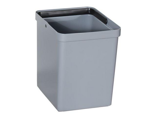 Innerbehållare för enkel avfallssortering. Praktisk behållare för enkel avfallssortering av t ex plast, glas, metall och liknande. Innerbehållaren kan med fördel användas om det finns vassa föremål i avfallet för att säkerställa att påsen inte spricker. Denna behållare är tillverkad av 100% återvunnen plast och utrustad med handtag för enkel hantering. – Mått (H×B×D): 29 x 23 × 26,5cm – Material: 100% återvunnen plast – Nettovikt: 670g – Kapacitet: 15 liter
