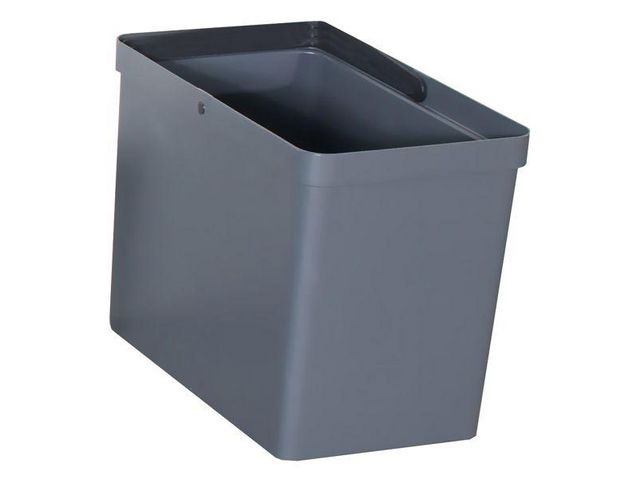 Innerbehållare för enkel avfallssortering. Praktisk behållare för enkel avfallssortering av t ex plast, glas, metall och liknande. Innerbehållaren kan med fördel användas om det finns vassa föremål i avfallet för att säkerställa att påsen inte spricker. Denna behållare är tillverkad av 100% återvunnen plast och utrustad med handtag för enkel hantering. – Mått (H×B×D): 29 x 23 × 36cm – Material: 100% återvunnen plast – Nettovikt: 830g – Kapacitet: 20 liter