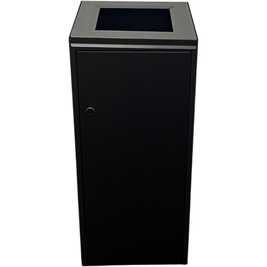 Elegant och robust avfallshantering med tyst stängning. Elegant och robust sorteringskärl med mjukstängande lock för tyst och behaglig användning. Locket har ett rektangulärt öppningshål. Kärlet är utrustat med ställfötter och en praktisk öppningsbar dörr, vilket medför ergonomiskt byte av säck. Dörren är utrustad med lås för ökad säkerhet. Dörrnyckel medföljer, samt kopplingssats för sammankoppling av flera kärl. Funkar perfekt att kombinera flera kärl på rad för olika avfall. Tillverkat i Sverige av återvunnet svenskt stål och pulverlackerat för hög hållbarhet och stilren finish. – Mått: D 36 x B 37 x H 83 cm – Vikt: 18,1 kg – Material: pulverlackat återvunnet svenskt stål – Färg: svart