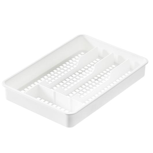 Skapa struktur i kökslådan – praktisk besticklåda för alla dina redskap. Den lilla GastroMax besticklådan skapar ordning och reda bland bestick och redskap i kökslådan. Lådan har tre standardfack för gafflar, knivar och skedar, ett mindre fack för små skedar och ett större fack för större redskap. Tål maskindisk för enkel rengöring. – Mått: 33 x 23 x 5 cm – Material: PP – Tål maskindisk – Tillverkad i Finland