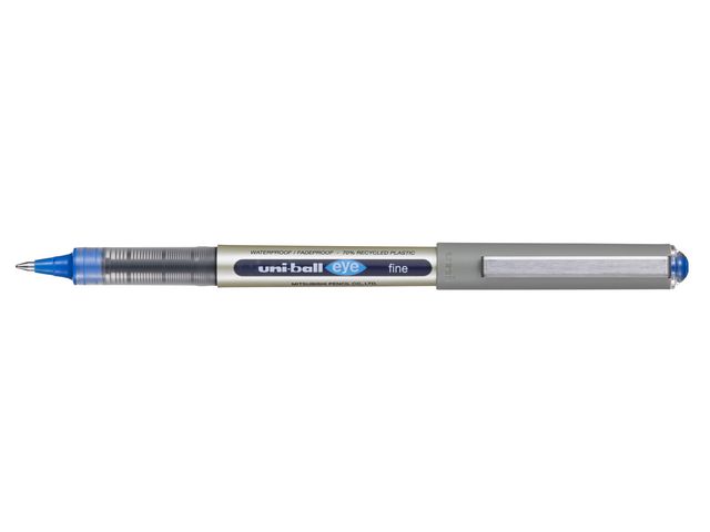 Kulspetspennan Uni-Ball Eye har ett unikt bläckflödessystem som ger jämn och enhetlig skrift från början till slut. Den här kulspetspennan har det unika bläckflödessystemet Uni-Flow som säkerställer att bläcket flyter jämnt och fint till sista droppen. Den här pennan är perfekt när du skriver något som ska presenteras. Uni-Ball Eye har en fin 0,7 mm-spets i rostfritt stål, vilket bidrar till exakt och snygg skrift. Den här kulspetspennan har vatten- och ljusbeständigt Super Ink™-bläck, som gör att texten håller och ser snygg ut länge. Bläcknivån visas i ett litet fönster så att du kan hålla koll på hur mycket bläck som finns kvar. Den här pennan har också en praktisk fickklämma och lock. – Linjebredd: 0,2 mm – 70% återvunnen plast