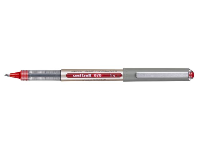 Kulspetspennan Uni-Ball Eye har ett unikt bläckflödessystem som ger jämn och enhetlig skrift från början till slut. Den här kulspetspennan har det unika bläckflödessystemet Uni-Flow som säkerställer att bläcket flyter jämnt och fint till sista droppen. Den här pennan är perfekt när du skriver något som ska presenteras. Uni-Ball Eye har en fin 0,7 mm-spets i rostfritt stål, vilket bidrar till exakt och snygg skrift. Den här kulspetspennan har vatten- och ljusbeständigt Super Ink™-bläck, som gör att texten håller och ser snygg ut länge. Bläcknivån visas i ett litet fönster så att du kan hålla koll på hur mycket bläck som finns kvar. Den här pennan har också en praktisk fickklämma och lock. – Linjebredd: 0,45 mm – Kula av hårdmetall – Fönster för bläcknivå så att det syns hur mycket bläck som finns kvar – Fickklämma och lock gör den enklare att bära med sig – Färg: blå – 70% återvunnen plast