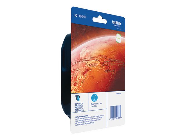 Få bästa möjliga utskriftskvalitet, skarp text och livfull grafik med Brother LC1100HYC cyan bläckpatron. Brother LC1100HYC cyan bläckpatron med hög kapacitet ger lysande, tydliga resultat för utskrifter av hög kvalitet. Denna kassett täcker i princip alla utskriftsbehov, från rapporter och diagram till häften och presentationer. Bläcket som är utformat för optimal användning i olika Brother-maskiner är kladdfritt och färgbeständigt, vilket ger hållbara utskrifter. Den här prisvärda bläckpatronen ger en kapacitet på upp till 750 sidor. – Färg: Cyan – Kapacitet: Upp till 750 A4-sidor – Enkelt att installera och byta – Kladdfri och färgbeständig – Fantastiskt värde – Ger text och bilder med utmärkt kvalitet – Passar till: Brother DCP-6690CW, MFC-5890CN, MFC-5895CW, MFC-6490CW, MFC-6890CDW – Brother Justio MFC-5890CN
