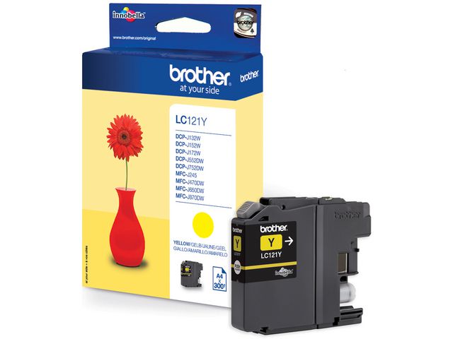 Bläckpatronen Brother 121Y är innovativ och exakt och skapar tydliga och högkvalitativa utskrifter. Bläckpatronen Brother 121Y är innovativ och exakt och skapar högkvalitativa utskrifter. Bläckpatronen innehåller gult bläck och har en kapacitet på 300 sidor. Den är enkel att installera, vilket ger en reducerad installationstid för ökad bekvämlighet och smidighet. – Färg: gul – Kapacitet på 300 sidor – Sidkapacitetstäckning: ISO/IEC 24711 – Singelförpackning – Hög kvalitet – Försändelsens vikt: 55 g – Djup: 2,6 cm – Höjd: 12,3 cm – Bredd: 8,6 cm – Kompatibel med: DCP-J152W, DCP-J552DW, DCP-J752DW, MFC-J470DW