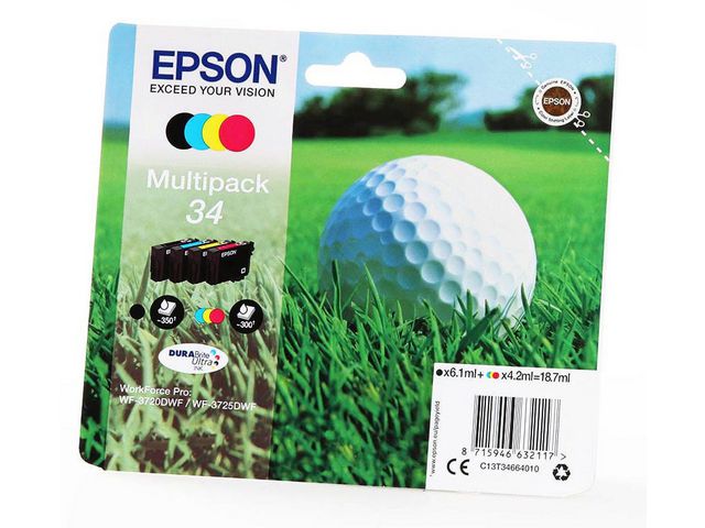 Epson T3466 BK/C/M/Y levererar klara utskrifter, oavsett om det är textdokument eller foton. Epson bläckpatroner är skapade med kvalitet och prestanda i åtanke, Epson T3466 BK/C/M/Y bläckpatron är ekonomisk och nekel att använda. Epson bläckpatroner är designade för att producera högkvalitativa dokument och livfulla bildutskrifter. Den här bläckpatronen passar bäst tillsammans med Epson-skrivare, tillsammans genererar de utmärkta utskrifter. – Högkvalitativa utskrifter – Kapacitet: Upp till 350 sidor svart. Upp till 300 sidor cyan, magenta, gul – Färg: Svart, Cyan, Magenta, Gul – Kompatibel med: Epson WorkForce Pro WF-3720DWF / WF-3725DWF