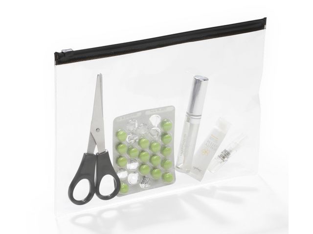 Blixtlåsförsedd plastpåse som kan användas för att förvara och transportera små artiklar som kosmetika, medicin och tillbehör. Tillverkad av högkvalitativ PVC för att garantera en tillförlitlig och långvarig användning. Den här återförslutningsbara påsen är kompatibel med A5-dokument och köksredskap. Den här blixtlåsförsedda påsen är idealisk för användning på kontoret, i hemmet eller när du reser. – Tillverkad av högkvalitativ PVC – Enkelt att förvara – Är återförslutningsbar – Format: A5 – Färg: Svart – Antal: 5 – Innehåller PVC