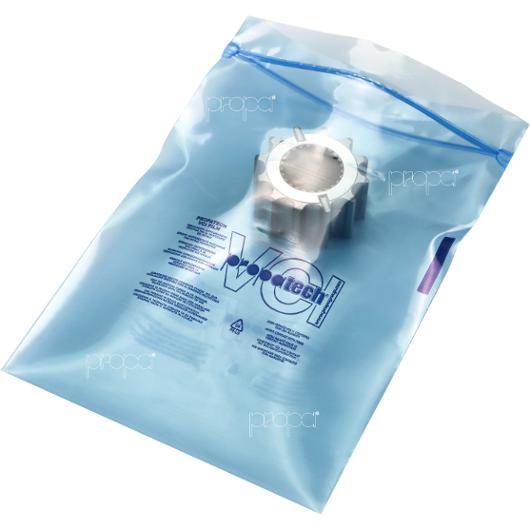Zip-påse som tack vare VCI skyddar produkterna mot rost och korrision. VCI är en förkortning för ”Volatile Corrosion Inhibitor” och betyder ungefär ”Flyktigt rostskydd”. Påsen har en barriär som skyddar produkterna som packas mot korrision och rost. – Mått: 100 x 160 mm