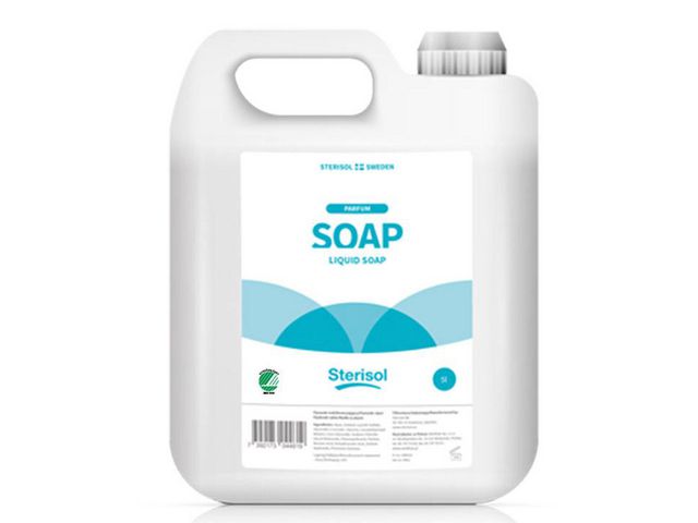 Sterisol Sweden Flytande Tvål är en mild tvål av mycket hög kvalitet och doften är noga utvald för att kännas behaglig och naturlig. En syntetisk tvål som kan användas på hela kroppen. Den kan användas i miljöer med hårt och/eller salt vatten. Tvålen är lämplig för handtvätt i varje situation där en mild tvål är önskad och kan användas. Den är ett bra val för offentliga miljöer, skolor och institutioner där man använder öppna, påfyllbara dispensrar. – Innehåller näringsgivande ingredienser – Efterlämnar en mild doft – Bör användas med en dispenser – Volym (per flaska): 5 liter – pH-värde är ca 5 – Svanen: Licensnummer 30900196