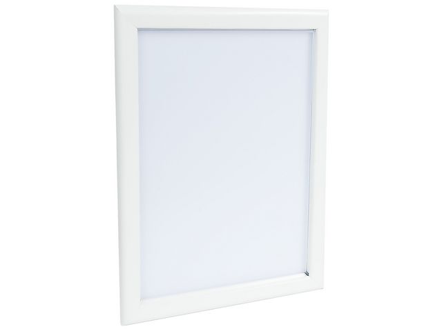 Väggram där du enkelt kan byta budskap. Väggram/Snäppram med aluminiumprofil som gör det enkelt att byta ut ditt budskap. Inklusive frontplast samt skruv & plugg för fastsättning. Tillverkad av PVC. – Storlek: A3 – Rambredd: 32 mm – Färg ram: Vit – Material ram: Aluminium