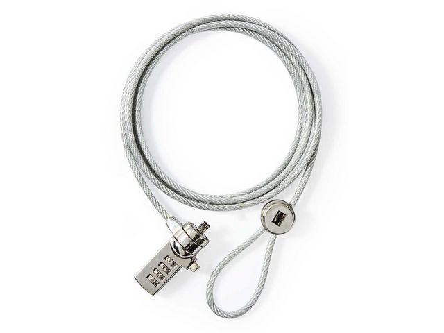 Vajerlåset har kombinationslås och är 1,8m långt. – Vajern är 4 mm