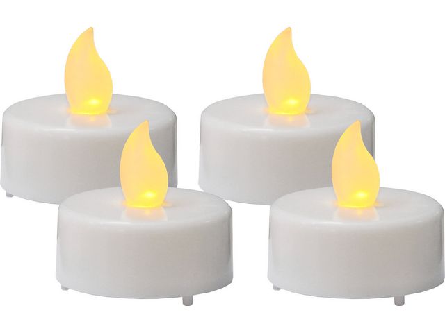 Mysigt och behagligt ljus! Batteridrivna värmeljus där lågan ger ifrån sig ett varmt härligt sken, vilket gör dem perfekta för att skapa en mysig atmosfär inomhus. – 4-pack med batteridrivna värmeljus – Fyra batterier CR2032 ingår – Livstid ca 80h – Färg: Vit
