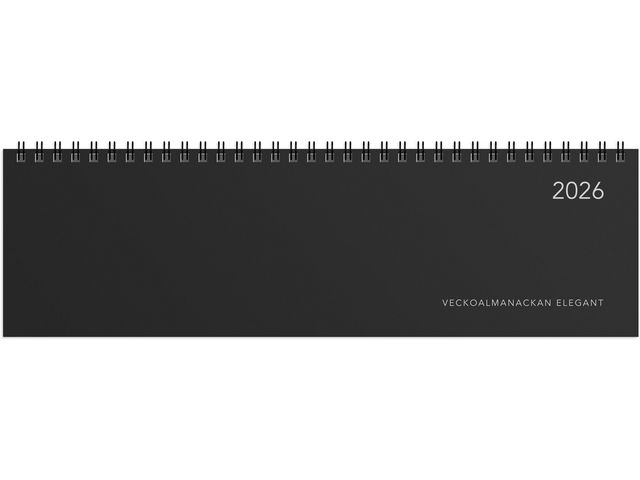 Spiralbunden. En vecka per blad. Timindelad 8-18. – Format: 305×90 mm – Layout: Stående. Vecka/uppslag. Timindelning 8-18 – Kalendarium: 2025-12-15 – 2027-01-03 – Omslag: Kartong. Spiralbunden – Innehåll: Kyrkliga helgdagar, Flaggdagar, Helgdagar/aftnar, Månfaser, Namnsdagar, Temadagar/händelser, Årsöversikt/årsöversikter – Antal sidor: 112 – FSC Mix