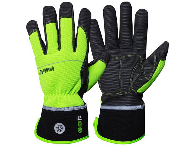 Varmfodrade arbetshandskar från Granberg som är både köldisolerande och vattenavvisande. Lämpliga för lätt till medeltungt arbete inom montering, transport, underhåll, industri, anläggning och lager i kalla miljöer. Ett varmt och mjukt foder med ventilerande membran i innerhanden. De har även extra förstärkning i handflata och vid tumroten. Goda ventilerande egenskaper och hög synbarhet tack vare den gröna färgen på ovansidan samt reflekterande tejp på manschetten. Produkten är CE-märkt. – Godkänd enligt: EN 388:2016+A1:2018, EN 420:2003+A1:2009, EN 511:2006 – Material innerhand: MicroSkin Shield® – Material ovanhand: polyester, spandex® – Foder: syntetfoder – Fodertyp: helfodrad – Grepp: torrgrepp, våtgrepp – Passform: normal – Färg: svart, grön – Storlek: 8 – CE-märkta