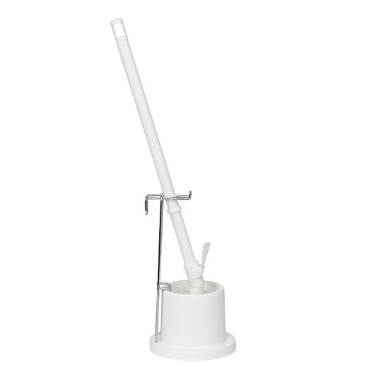 Toalettborste med hygienisk förvaring i en stilren och stabil hållare Håll badrummet fräscht och organiserat med detta WC-set i klassiskt vitt. Med sin stilrena design smälter det enkelt in i alla typer av badrum – från modernt till tidlöst. Den stabila hållaren på 72 cm ger en bekväm höjd och gör att toalettborsten alltid är lättillgänglig, samtidigt som den hålls diskret och hygieniskt förvarad. Perfekt för dig som vill kombinera funktion med snygg design. – Färg: vit – Mått: 72 cm – Styvhet: medium – Material: polyester, galvaniserat stål (S235), återvunnen polypropylen, polypropylen