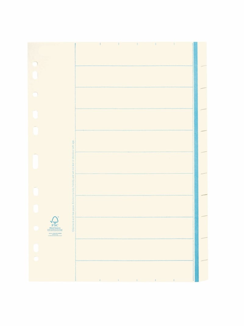 Tillverkas av gultonat 90g kraftpapper som är klor och syrafritt. Flikarna är otryckta. Samtliga register är tillverkade av FSC certifierat papper vilket gör dem till ett bra miljöval. Index 10-flik.