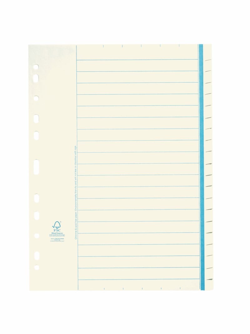 Tillverkas av gultonat 90g kraftpapper som är klor och syrafritt. Flikarna är otryckta. Samtliga register är tillverkade av FSC certifierat papper vilket gör dem till ett bra miljöval. Index 20-flik.
