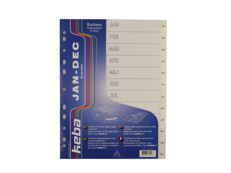 Plastregister i A4-format av mycket hög kvalitet. Helt transparent för ett stilrent och modernt intryck. Indexbladet är vändbart med extra mycket plats för text. Index jan-dec.