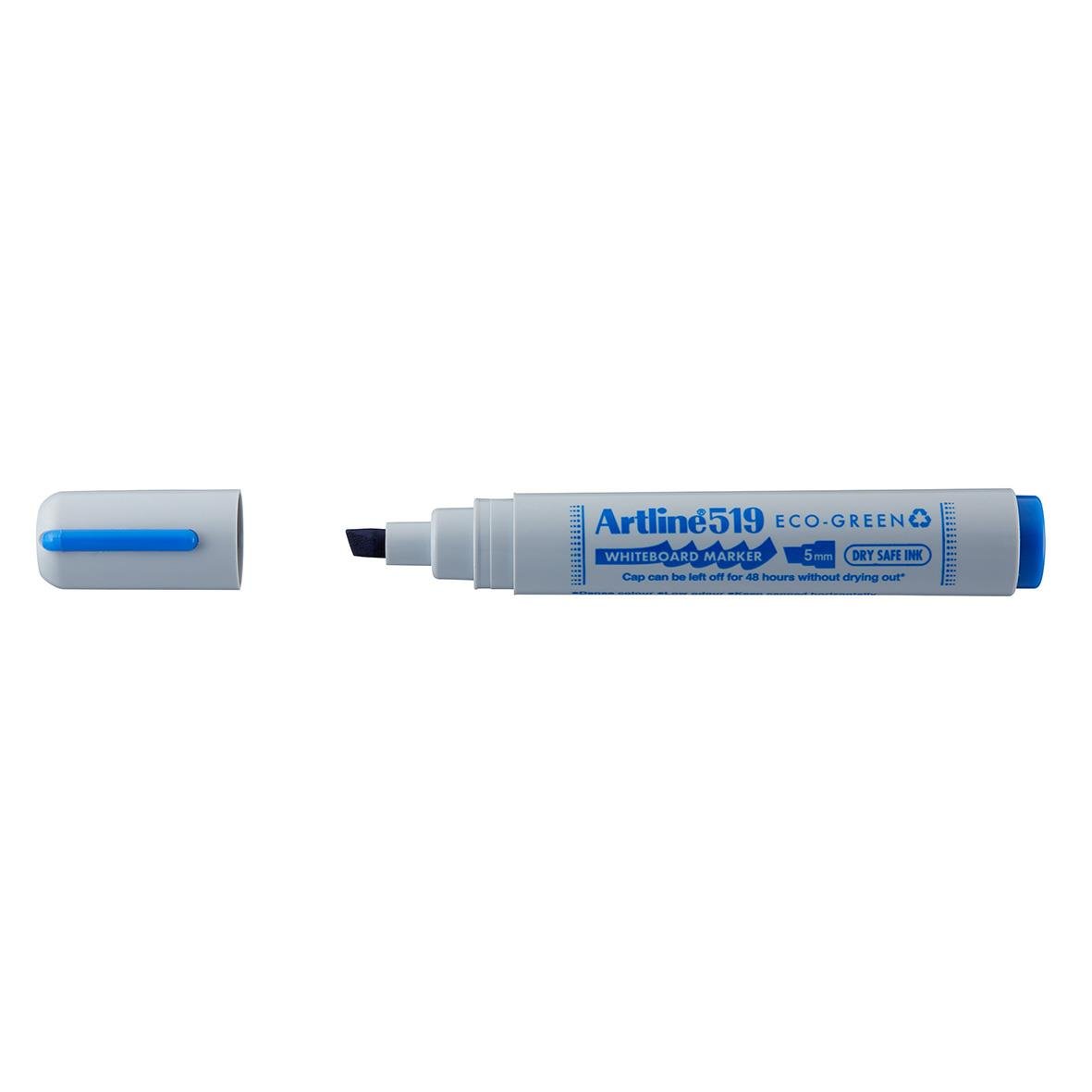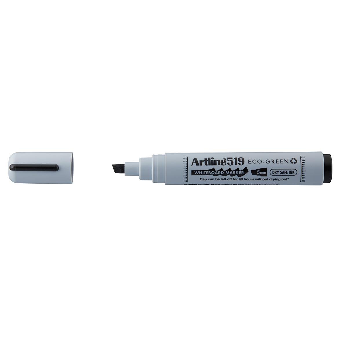 Whiteboardpenna Artline 519 ECO-GREEN Sneddskuren Grön. Whiteboard-penna med skuren spets och 2-5 mm skrivbredd. Plasthylsa i återvunnen plast, alkoholbaserat pigmenttusch utan Xylen, Dry Safe-funktion vilket betyder att den vara utan huv i 48 timmar.Till