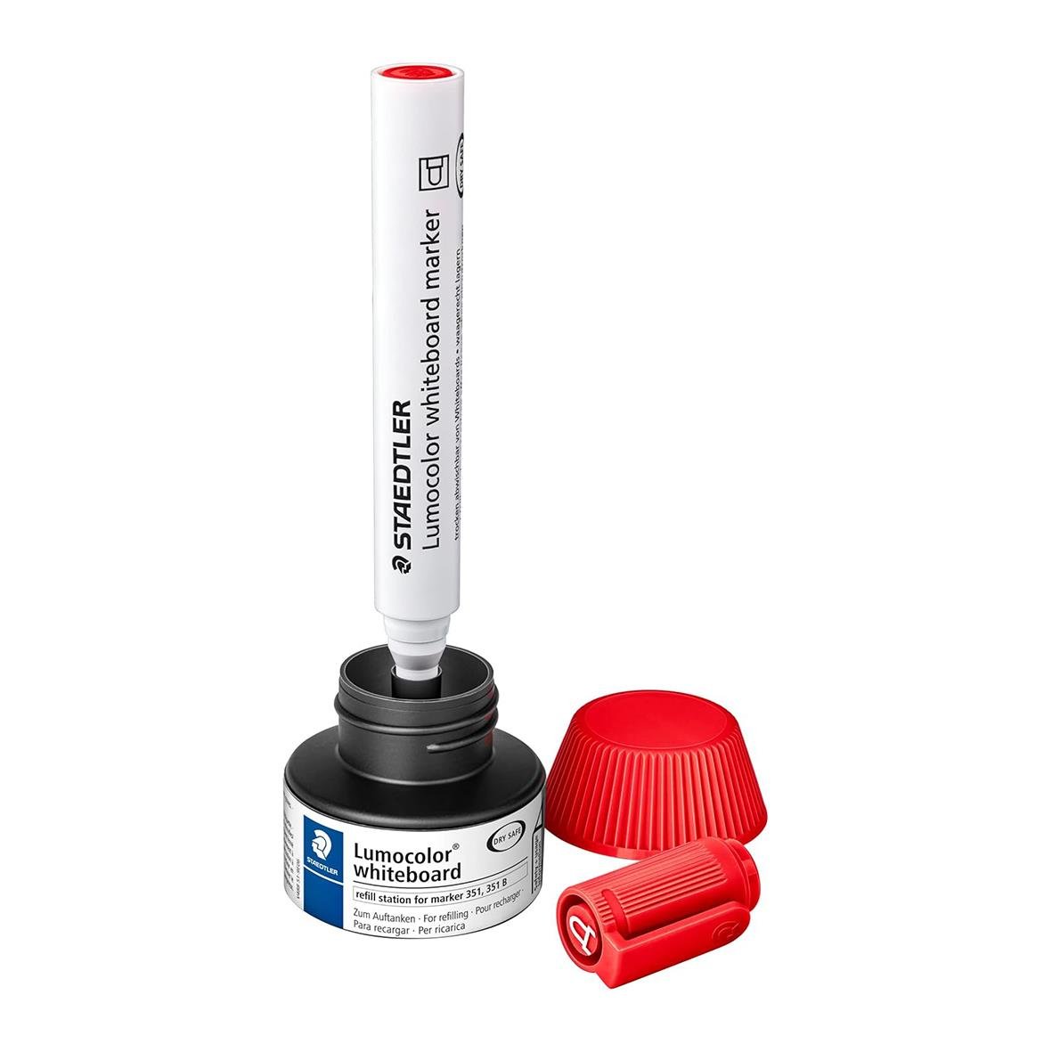 Refil Staedtler Lumocolor WB Lumo 351/351 B Svart. Smidig och praktisk lösning för att fylla på dina Lumocolor whiteboardpennor – snabbt, rent och enkelt. Produktbeskrivning: • Speciellt utformad för Lumocolor whiteboardpennor modell 351 och 351 B. • Penn