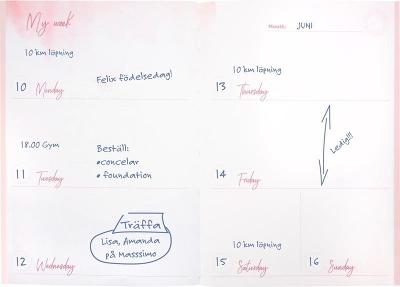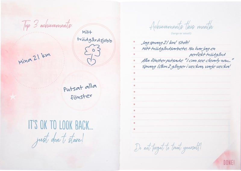 Almanacka Burde 7424 This is my year. Inbunden odaterad kalender med rosa märkband och hårt omslag i kartong. Ett planeringsverktyg för att uppnå sina drömmar och mål. Kalendern innehåller sidor med inspirerande citat plats för mål reflektioner och anteck