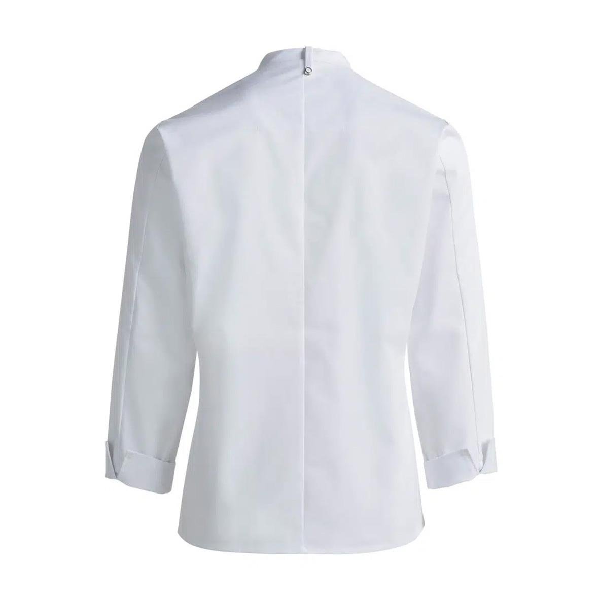 Kock-/Serveringsjacka Kentaur 23591 Vit S. - Modern fit - Kinakrage - Hank i nacken för bröstförkläde - Dolda tryckknappar - Lång ärm - Manschetter 50/50% CO/PES - 210 g/m2
