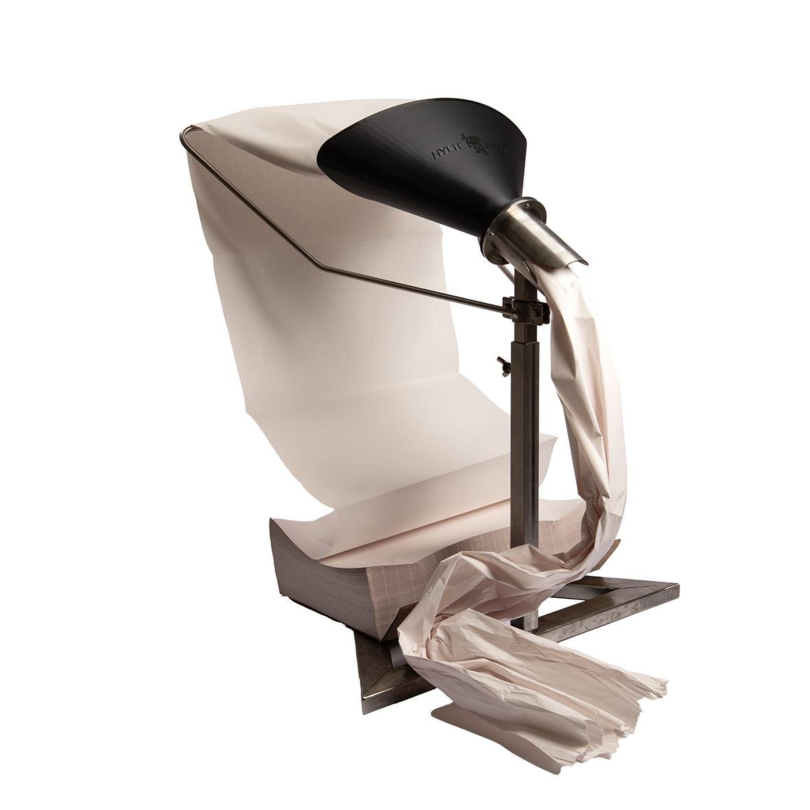 Förpackningsmaskin Manuell Till Förpackningspapper. Hylte Papers egna handgjorda pappersskrynklare i rostfritt stål ger den perfekta balansen av elegans och funktion. Utformad för lager och E-handel där man vill skydda sina varor på bästa sätt. Dispense