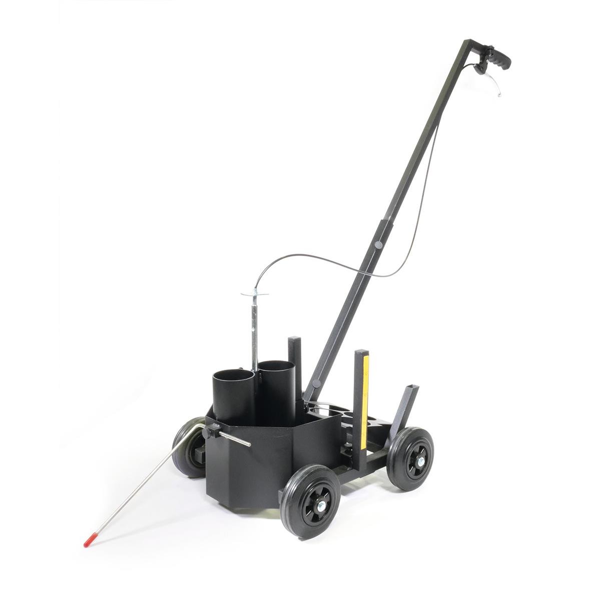 Linjemarkeringsvagn DURALINE EasyTrack är ett praktiskt hjälpmedel för snabb, exakt och jämn linjemarkering på lager, i produktionsanläggningar och utomhusområden som parkeringsplatser och skolgårdar. Vagnen, som är av metall, har höjdjusterbart handtag s