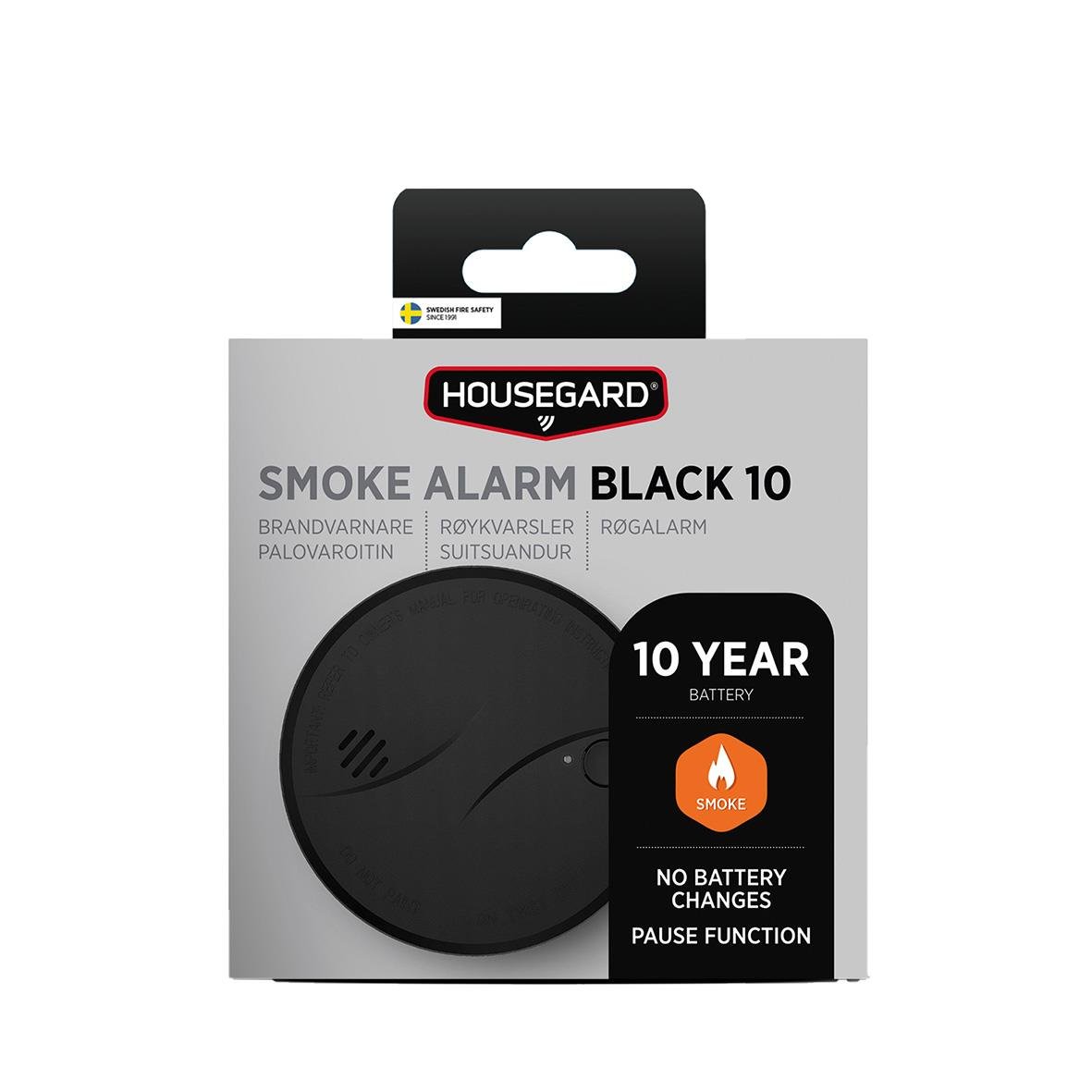 Brandvarnare Housegard Black 10 är en elegant brandvarnare med matt svart finish som förenar design och trygghet. Den är utrustad med ett inbyggt litiumbatteri med 10 års livslängd, vilket innebär att du slipper tänka på batteribyten. Perfekt för dig som