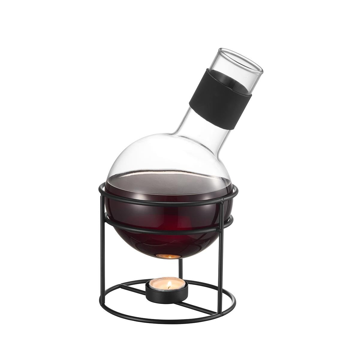 Låt den varma glöggen stå framme på bordet i den vackra glöggkaraffen Glora. Ett enkelt värmeljus håller glöggen varm när den står i sin fina smidesställning. Karaffen rymmer 1,3 liter glögg och kragen i silikon gör den enkel att servera ur.