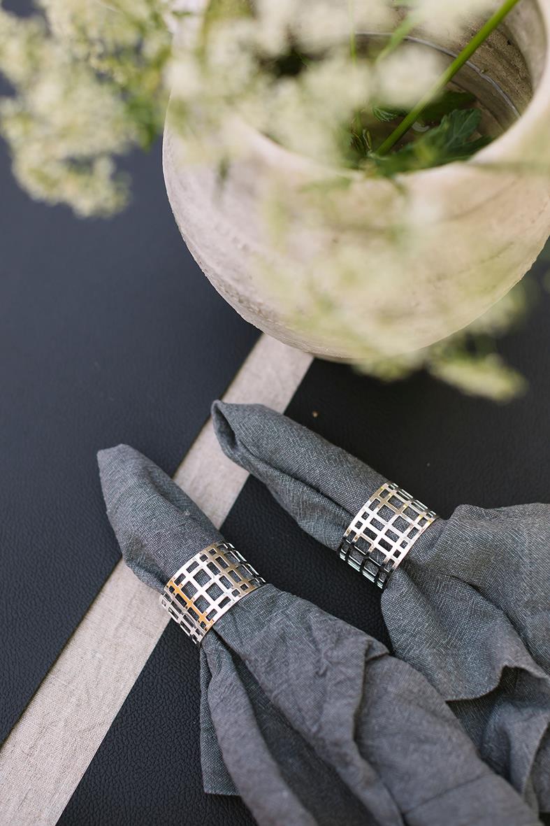 Servina servettringar i försilvrat material. Låt dessa moderna servettringar förgylla din dukning. H3 cm, B4,5 cm. Handdiskas.