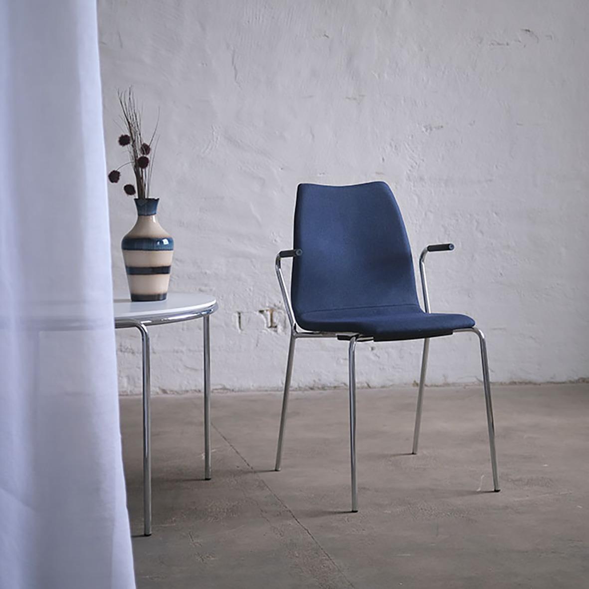 Karmstol inoff Knuff Helklädd Mörkgrå/Svart kombinerar stilren form med smart funktion. Det helklädda sittskalet i formpressat trä ger en behaglig sittupplevelse, medan de integrerade armstöden ger extra stöd och komfort. Armstödens konstruktion gör dessu