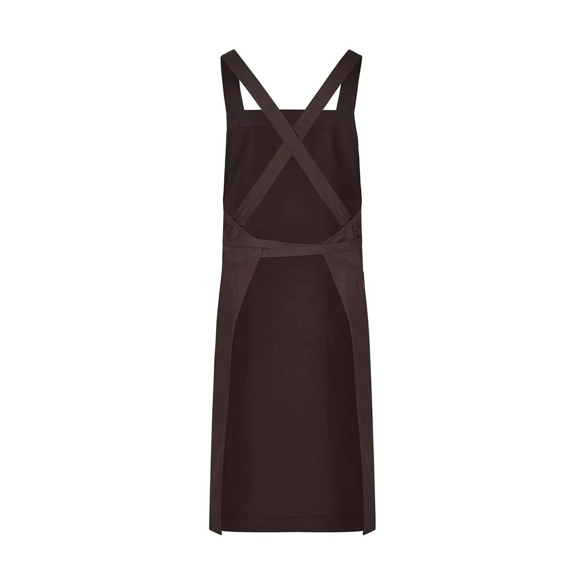 Bröstlappsförkläde Segers 4577 Supportive 70x100 Mörkbrun. Bröstlappsförkläde med ergonomi i fokus tack vare kors i ryggen med reglerbara hängslen. Produkten ingår i vår Segers Green kollektion. - Miljöbättre tyg - Sidficka med nyckelhälla - Tvättbar i