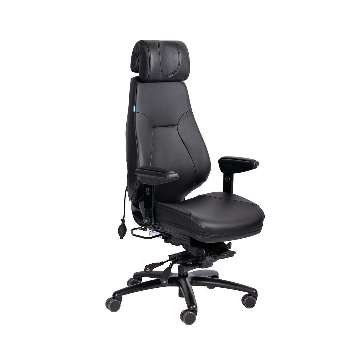 Kontorsstol Be-Ge Frapett 852 24H Konstläder Svart. Extra kraftig 24H-modell med bred sits och hög rygg som ger komfort även under de längsta arbetspassen. Separat ryggvinkel och stötdämpad rygglutning gör att stolen följer dina rörelser för en aktiv och