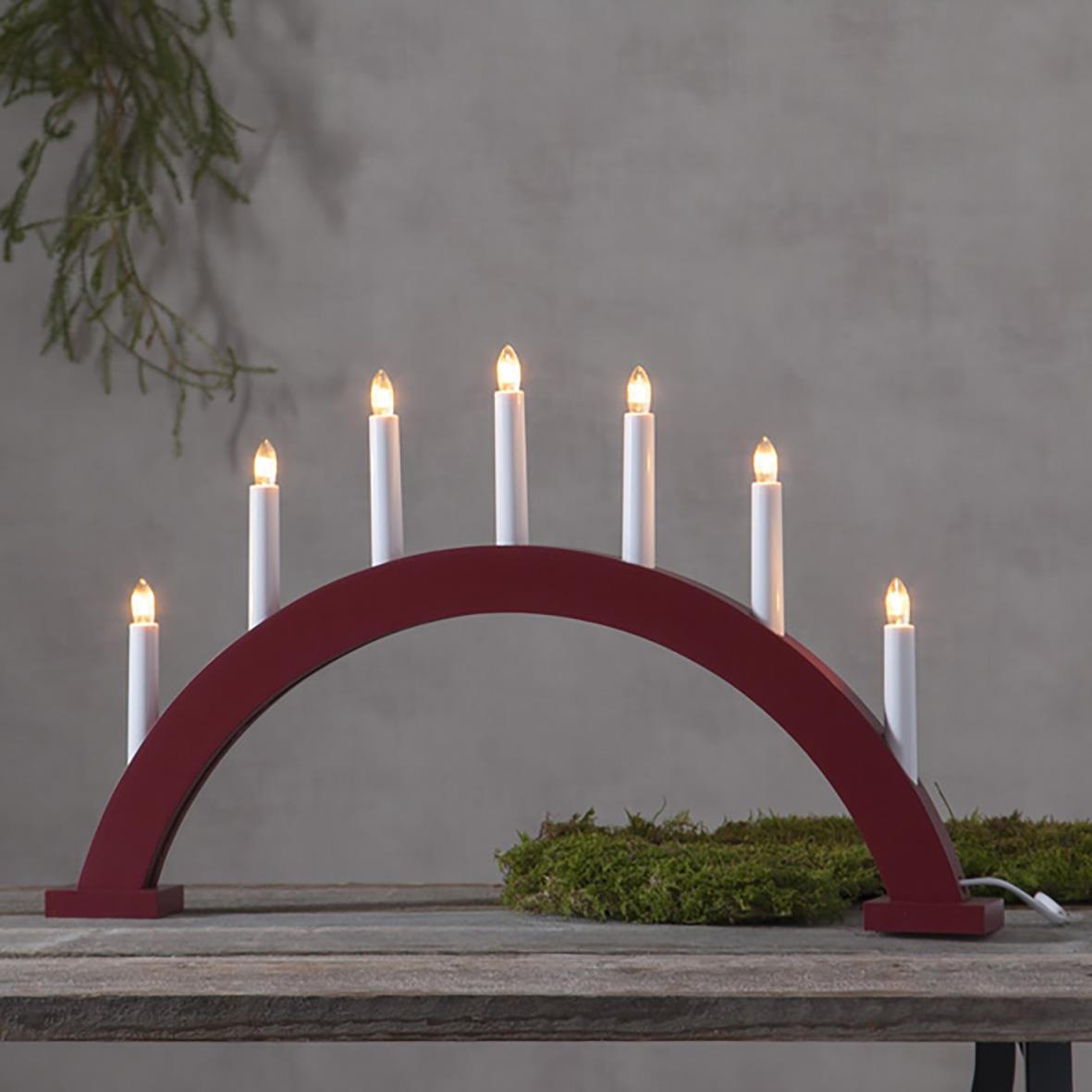 Röd bågformad träljusstake, 7 ljus. Placera ljusstaken exempelvis i förnstret för att skapa en härlig adventsstämning i hemmet.