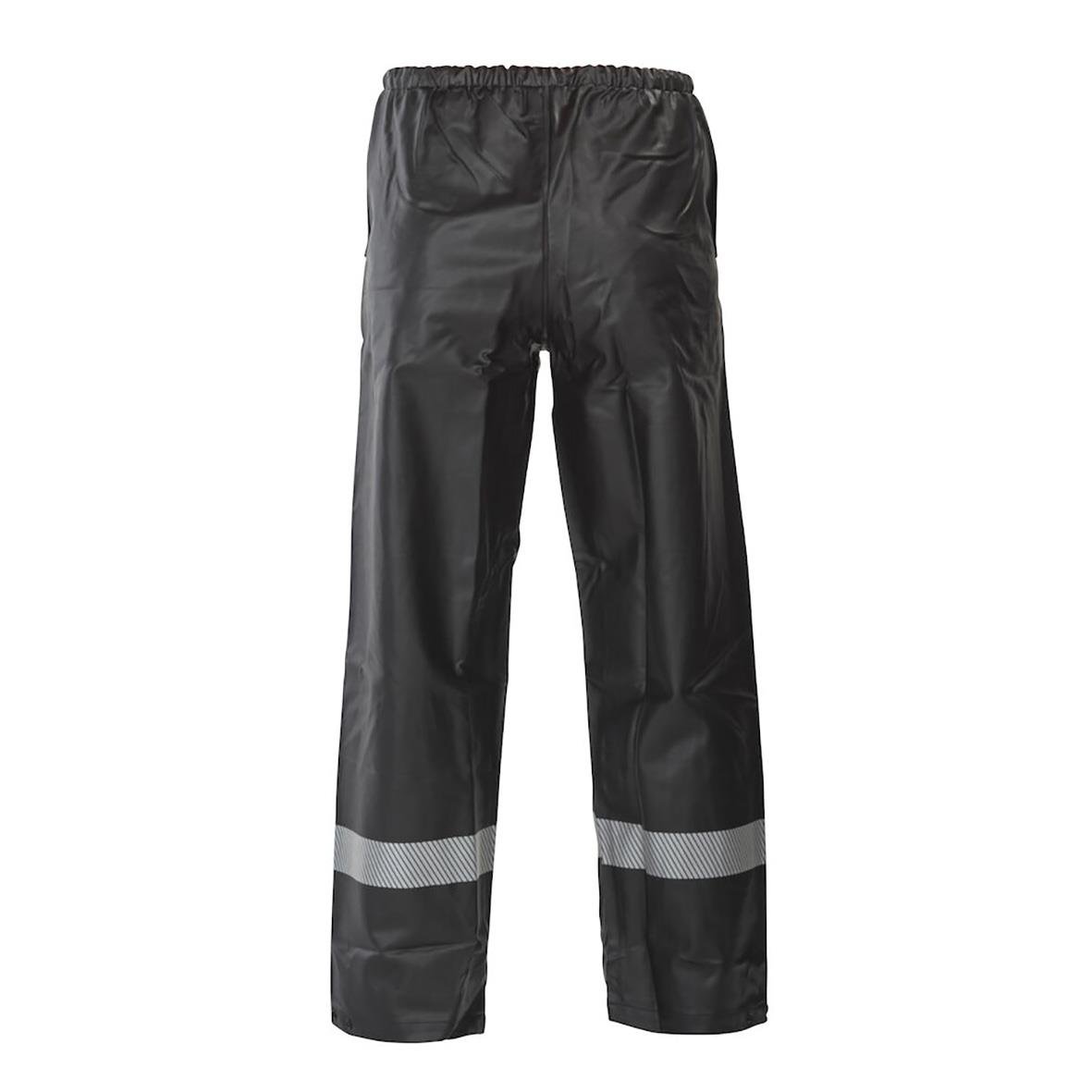 Regnbyxa Projob 4530 Svart XS Regnbyxa med sydda och svetsade sömmar. Resår och snodd i midja. Sid?ckor med lock och ?ckpåsar i mesh för ventilation. Re?ex i nederkant av benen. Reglerbar vidd i benslut med tryckknapp. Material - 58% PVC, 27% polyester,