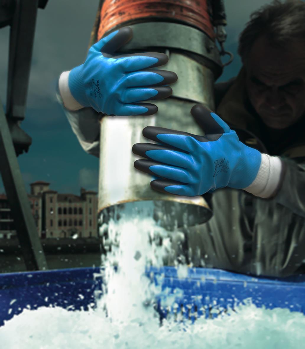 Handske Showa 477 Nitril Winter Svart/Blå 11. För användare som önskar hålla sina händer torra och varma i kall och blöt omgivning är Showa 477 det självklara valet. En bra kombination av varmt akrylfoder och ett yttermaterial som är tätt mot både vatte