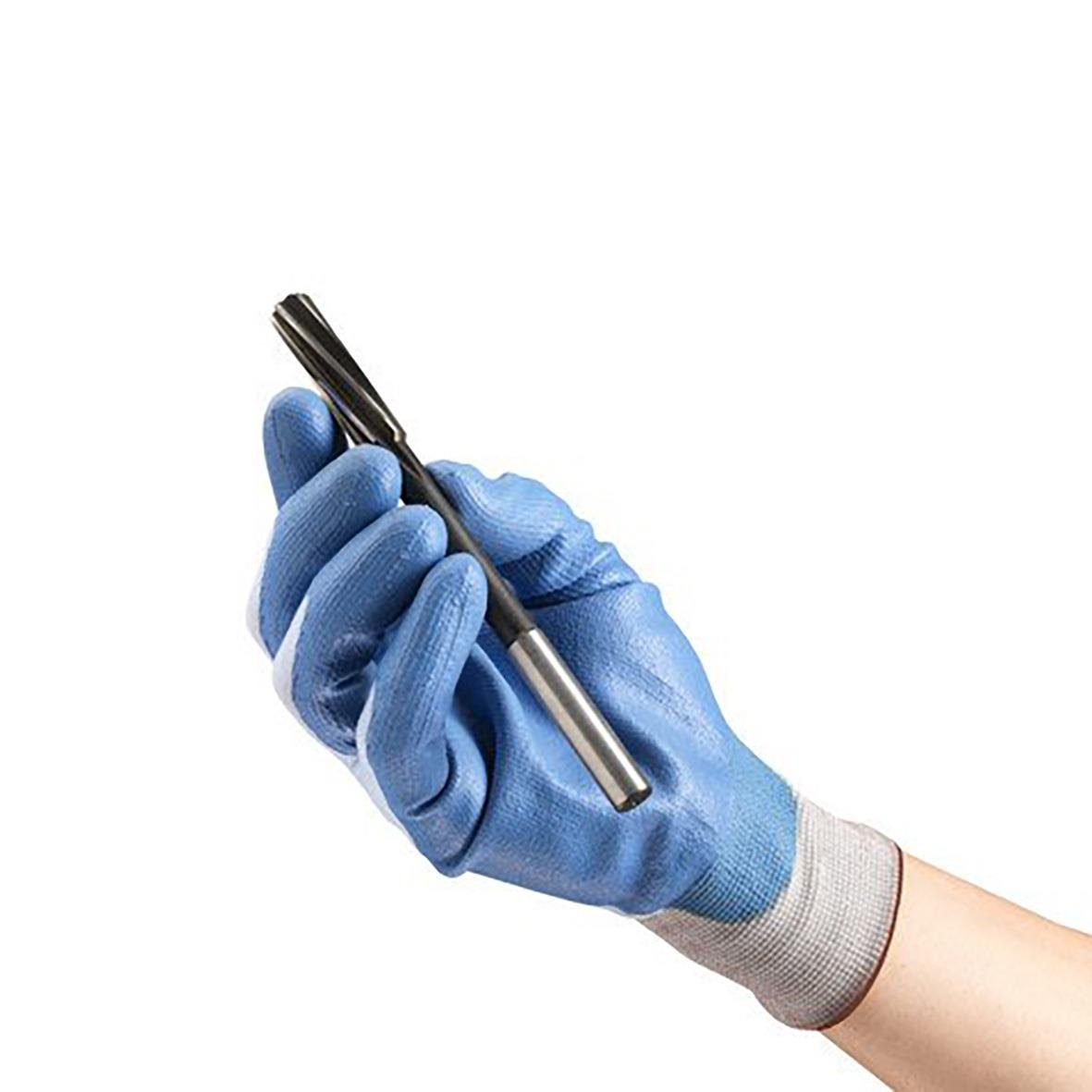 Skärskyddshandske Ansell HyFlex 11-518 11 Stickad handske i tunna garn av Dyneema® Diamond Technology-fibrer med en tunn PU-beläggning vilket ger en ny grad av fingerkänsla för tillämpningar med skärrisker. 3-D stickning av lillfingret ger extra bra pass