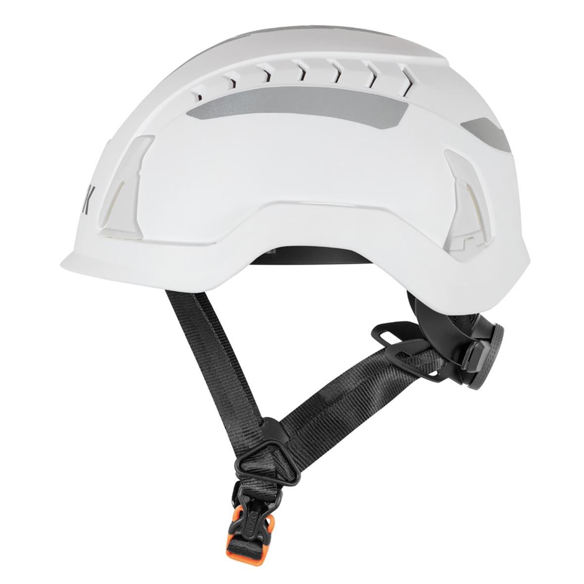Skyddshjälm Kask Primero Air Hi-Viz Vit. Ventilerad skyddshjälm med påmonterade reflexer. Yttre skal i HD polypropylen och inre skal i HD polystyren. Hjällmens storlek är justerbar 52-63cm och levereras med ett 4-punkshakband i nylon med 5 justeringspunk
