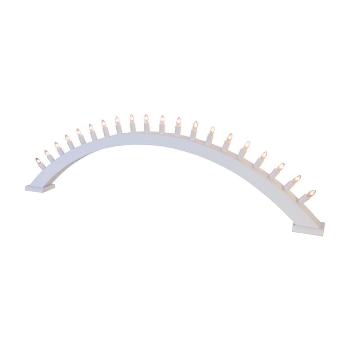 Vit träljusstake med 20 ljuskällor. Ljusstaken är formad som en båge och ger ett elegant intryck. En underbar adventsljusstake som sprider härlig julstämning i hemmet.