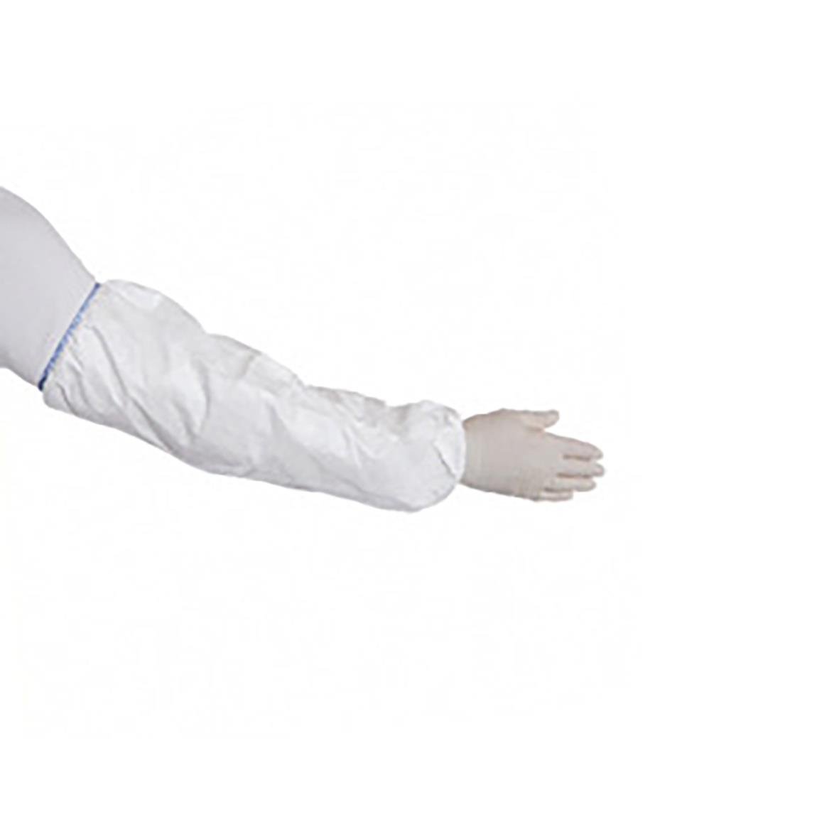 Ärmskydd av Tyvek i konisk form med resår runt handled. Längd 50 cm, överarmsbredd 10,5 cm och handledsbredd 9,5 cm. Övre arm i blåfärgad tråd för identifieringsändamål.